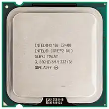 The Core microarchitecture returned to lower clock rates and improved the use of both available clock cycles and power when compared with the preceding NetBurst microarchitecture of the Pentium 4 and D-branded CPUs.[4] The Core microarchitecture provides more efficient decoding stages, execution units, caches, and buses, reducing the power consumption of Core 2-branded CPUs while increasing their processing capacity. Intel's CPUs have varied widely in power consumption according to clock rate, architecture, and semiconductor process, shown in the CPU power dissipation tables.