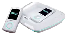 The console is based on an 8-core 1.8 GHz Qualcomm Snapdragon 624 system on a chip with an Adreno 506 GPU.[3] The system supports Bluetooth, Wi-Fi, RFID, HDMI out, a microSD card slot, a charging cradle for two Amico controllers on the top, passive cooling, and one USB-C port on the back for accessories and expansions.[1][37][2] The body also features a built-in LED ambient lighting system with 40 independently controlled LEDs[2] that can change pattern and color in response to gameplay, known as Interactive Guidance Lighting.[1][38] The console will launch with five available colors: Glacier White, Graphite Black, Vintage Woodgrain, Galaxy Purple and GTO Red.[39] The system has 32 GB of internal memory storage,[1] and utilizes a custom Android/Linux operating system developed in-house.[40]