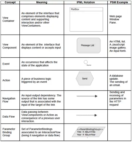 IFML describes user interactions and control behaviors of front-end of applications belonging to the following domains: