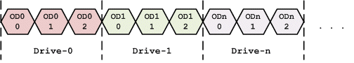 The first bit (ODn.0) is exclusively used to represent Activity. The second and third bits; Locate (ODn.1) and Fail (ODn.2) are directly used to represent a locate and fail state of the drive.