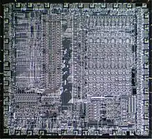 The Intersil 6100 is a single-chip microprocessor implementation of the 12-bit PDP-8 instruction set, along with a range of peripheral support and memory ICs developed by Intersil in the mid-1970s. It was sometimes referred to as the CMOS-PDP8. Since it was also produced by Harris Corporation, it was also known as the Harris HM-6100. The Intersil 6100 was introduced in the second quarter of 1975,[1][2] and the Harris version in 1976.[2]