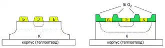 Jean Hoerni first proposed a planar technology of bipolar transistors. In this process, all the p-n junctions were covered by a protective layer, which should significantly improve reliability. However, at the time, this proposal was considered technically impossible. The formation of the emitter of an n-p-n transistor required diffusion of phosphorus, and the work of Frosch suggested that SiO2 does not block such diffusion.[48] In March 1959, Chih-Tang Sah, a former colleague of Hoerni, pointed Hoerni and Noyce to an error in the conclusions of Frosch. Frosch used a thin oxide layer, whereas the experiments of 1957–1958 showed that a thick layer of oxide can stop the phosphorus diffusion.[49]