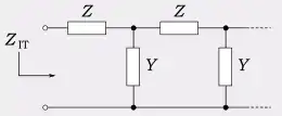 A simple generic L-circuit is shown in the diagram consisting of a series impedance Z and a shunt admittance Y. The iterative impedance of this network, ZIT, in terms of its output load (also ZIT) is given by,[4][5][6][7]