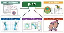 JMAG is a simulation software used to develop and design electric devices. JMAG was originally released in 1983 as a tool to support the design of devices such as motors, actuators, circuit components, and antennas.