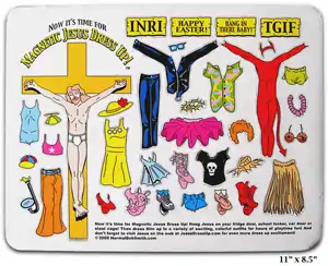 Jesus Dress Up is a game that was created by artist Normal Bob Smith in 1991 as a black-and-white Colorform, which he photocopied and distributed to friends.
