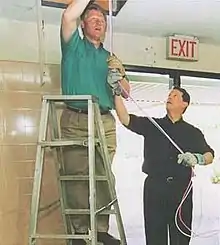 Gage created zoomable maps of the 140,000 schools in the United States, placing a meter-accurate dot for each school, color-coded for whether or not the school was connected to the Internet. He created a web-based sign-up page for each school, and "called on high-tech companies to commit resources to schools, libraries, and clinics worldwide so that they could connect to the Internet."[11] At some schools, hundreds of volunteers signed up, promising to come to the school on Saturday, March 9, 1996, to install Ethernet cables to five classrooms and the library. On the first NetDay in California, over 100,000 engineers wired 4,000 schools. President Clinton and Vice-president Gore pulled cables throughout Ygnacio Valley High School. Over the next year, over 70,000 schools across the United States held NetDays to wire their schools, and NetDay spread to Korea, Great Britain, France, and other countries.