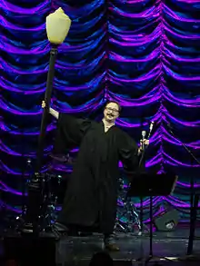 ![]() Hodgman at BookExpo America promoting Medallion Status in 2019 | |