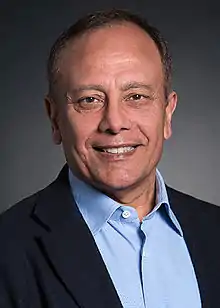 The company was founded in 1996 by Pradeep Sindhu, with Scott Kriens as the first CEO, who remained until September 2008. Kriens has been credited with much of Juniper's early market success.[2] It received several rounds of funding from venture capitalists and telecommunications companies before going public in 1999. Juniper grew to $673 million in annual revenues by 2000. By 2001 it had a 37% share of the core routers market, challenging Cisco's once-dominant market-share.[3][4] It grew to US$4 billion in revenues by 2004 and $4.63 billion in 2014. Juniper appointed Kevin Johnson as CEO in 2008, Shaygan Kheradpir in 2013 and Rami Rahim in 2014.