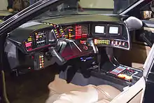![]() KITT on display at Universal Studios in 1993. It was built as a stunt car for the original series and the interior was later modified for the Universal Studios attraction. | |