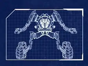 KARR was originally designed for military combat. Armed with twin machine guns on each shoulder and missiles, the exoskeleton combines with a human being for easier control. KARR is visually identical to KITT in this iteration, lacking the two-tone black and silver paint job of the 1980s version of KARR. The only difference is the scanner and voice box, which are yellow compared to KITT's red. Once again, similar to the original character, this entirely different "KARR" project (2.0) had an A.I. that was programmed for self-preservation, and he was deactivated and placed in storage after he reprogrammed itself and killed seven people.