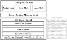 The KNX standard has been built on the OSI-based EIB communication stack extended with the physical layers, configuration modes and application experience of BatiBUS and EHS.