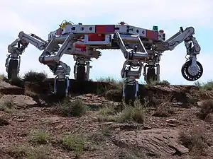 In mechanical engineering, a kinematic chain is an assembly of rigid bodies connected by joints to provide constrained motion that is the mathematical model for a mechanical system.[1] As the word chain suggests, the rigid bodies, or links, are constrained by their connections to other links. An example is the simple open chain formed by links connected in series, like the usual chain, which is the kinematic model for a typical robot manipulator.[2]