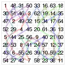 A tour reported in the fifth book of Bhagavantabaskaraby by Bhat Nilakantha, a cyclopedic work in Sanskrit on ritual, law and politics, written either about 1600 or about 1700 describes three knight's tours. The tours are not only reentrant but also symmetrical, and the verses are based on the same tour, starting from different squares.[8] Nilakantha's work is an extraordinary achievement being a fully symmetric closed tour, predating the work of Euler (1759) by at least 60 years.