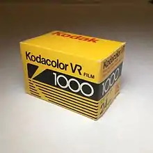 In still photography, Kodak's Kodacolor brand has been associated with various color negative films (i.e., films that produce negatives for making color prints on paper) since 1942. Kodak claims that Kodacolor was "the world's first true color negative film".[1] More accurately, it was the first color negative film intended for making paper prints: in 1939, Agfa had introduced a 35 mm Agfacolor negative film for use by the German motion picture industry, in which the negative was used only for making positive projection prints on 35 mm film.[2] There have been several varieties of Kodacolor negative film, including Kodacolor-X, Kodacolor VR and Kodacolor Gold.