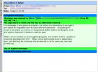 KMail supports the OpenPGP standard and can automatically encrypt, decrypt, sign, and verify signatures of email messages and its attachments via either the inline or OpenPGP/MIME method of signing/encryption. KMail depends on the GnuPG software for this functionality. As a visual aid, KMail will colour verified email messages green for trusted signatures; yellow for untrusted signatures; red for invalid signatures; and blue for encrypted messages.