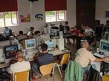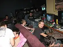 A LAN party is a social gathering of participants with personal computers or compatible game consoles, where a local area network (LAN) connection is established between the devices using a router or switch, primarily for the purpose of playing multiplayer video games together. LAN party events differ significantly from LAN gaming centers and Internet cafes in that LAN parties generally require participants to bring your own computer (BYOC)[1] and are not permanent installations, often taking place in general-use venues or residences.