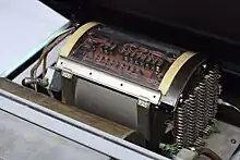 The primary design consultant for the Librascope computer was Stan Frankel, a Manhattan Project veteran and one of the first programmers of ENIAC. He designed a usable computer with a minimal amount of hardware.[6] The single address instruction set had only 16 commands. Magnetic drum memory held the main memory, and the central processing unit (CPU) processor registers, timing information, and the master bit clock, each on a dedicated track. The number of vacuum tubes was minimized by using solid-state diode logic, a bit-serial architecture[7] and multiple use of each of the 15 flip-flops.