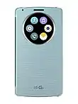 Prior to the unveiling of the G3 itself, LG unveiled the device's QuickCircle Case accessory. A successor to the QuickWindow Case produced for the G2, the case consists of a flip cover with a circular window near the top. A glow effect around the rim of the window is used to signify notifications, and a number of apps—including the camera, music player, and phone—can be used from a special circular interface without opening the phone. The case also enables the use of wireless charging on G3 models sold in Korea and the United States.[19][33]