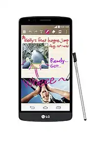 LG G3 Stylus is an Android smartphone developed by LG Electronics. It is a low-end phablet modeled after the design of the LG G3, and includes a stylus pen that can be used for drawing and touch input.[1]