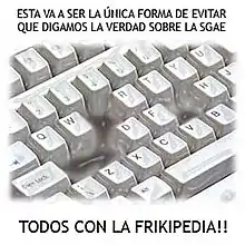 Following the closure of the website, a campaign was launched in support of La Frikipedia.[2] In addition, the head of the Frikipedia opened a page where small donations collected two and five euros through the payment system PayPal with intended to cover travel expenses, lawyers and a hypothetical sentence.