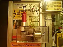 The 3.8-metre (12 ft) wide concrete-lined tunnel, constructed between 1983 and 1988, was formerly used to house the Large Electron–Positron Collider.[31] The tunnel crosses the border between Switzerland and France at four points, with most of it in France. Surface buildings hold ancillary equipment such as compressors, ventilation equipment, control electronics and refrigeration plants.
