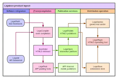 LayaBox (Souyou Network Technology Beijing Co., Ltd.), also named Laya, is a Chinese-developed freeware framework which includes a web-based game engine named LayaAir which targets mobile and web platforms,[3] as well as online publishing and digital distribution services.[3] First announced on the Global Mobile Game Confederation in March 2015,[4][5] it offers a feature set for developing multi-platform games.