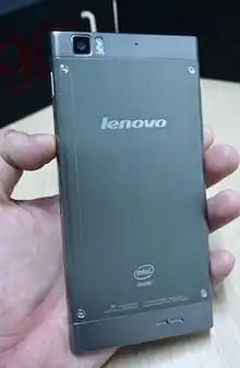 The Lenovo K900.[1] has a 1080p 5.5-inch screen using IPS technology. The K900's screen has more than 400 pixels per inch and is made with Corning's Gorilla Glass 2. The K900 is 6.9 mm thick and weighs 162 grams. The K900 case is made with a composite of stainless steel and polycarbonate formed in a unibody mold. The K900 runs on the Intel Atom Z2580 processor, a dual core chip, which runs up to 2.0 GHz and utilizes Intel's hyper-threading technology to improve performance. The device also uses an Intel graphics engine running a PowerVR SGX 544MP2 GPU.[2][3][4][5]