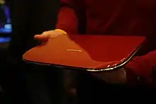 Some of the design differences from a traditional notebook included a semicircular shape, relatively larger touchpad, and Universal Serial Bus connector which extends out from the keyboard surface.[15] The Skylight used the Snapdragon technology from Qualcomm with a custom Linux operating system.[16]