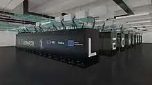 Leonardo is a petascale supercomputer located at the CINECA datacenter in Bologna, Italy. The system consists of an Atos BullSequana XH2000 computer, with close to 14,000 Nvidia Ampere GPUs and 200 Gbit/s Nvidia Mellanox HDR InfiniBand connectivity.[1] Inaugurated in November 2022, Leonardo is capable of 250 petaflops (250 quadrillion operations per second), making it one of the top five fastest supercomputers in the world.[2][3] It debuted on the TOP500 in November 2022 ranking fourth in the world, and second in Europe.[4]