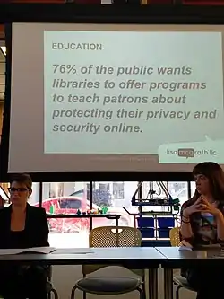The Library Freedom Project teaches librarians about surveillance threats, privacy rights, and digital tools to thwart surveillance.[1] In 2015 the Project began an endeavour to place relays and, particularly, exit nodes of the Tor anonymity network in public libraries.[2][3]