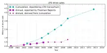 - "RECORD BREAKING AMOUNT IN TOTAL TAPE CAPACITY SHIPMENTS ANNOUNCED BY THE LTO PROGRAM" (PDF). LTO Organization. March 14, 2018. Retrieved June 6, 2019.
