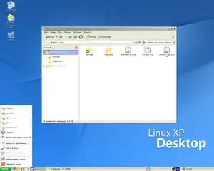 ![]() Linux XP 2006 SR 2 showing start menu and file manager | |
