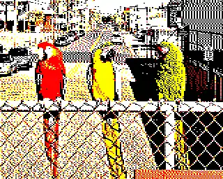 - Mode 1 - 256×192 graphics with 2 colors (from 16) for each 8x8 block of pixels (matching the display of the ZX Spectrum for backwards compatibility)