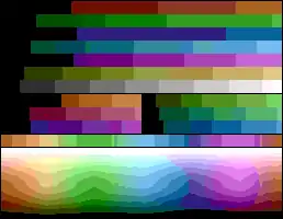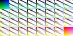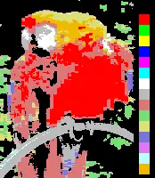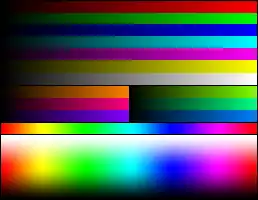 Sample image Color test chart 3-bit, 8-color palette 6-bit, 64-color palette