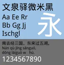 4 fonts, both Fandol Song and Fandol Hei has two weights (regular/bold). Originally for CTeX, there is debate on whether the font is FOSS as the author may have revoked the license.[30][31] | |||