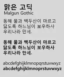 | BatangChe | 바탕체 | Distributed by Microsoft with its Windows operating system. Monospace font. | |||