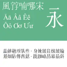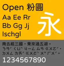 - Traditional Chinese (Taiwan, using education standard: Standard Form of National Characters, Chinese: 國字標準字體)