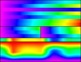 Palettes made of a continuous color gradient from darkest to lightest arbitrary hues. The pixel data is treated as if it were grayscale, but the color table plays with RGB color combinations, not only gray. The relationship between the original luminance and the mapped one can vary, but the lighting scale is preserved along all the palette entries.