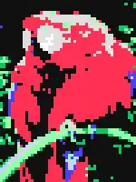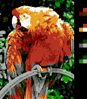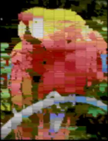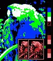The above image assumes there is no limit on the number of colors per scan line. With the system's actual color restrictions (and proper change in aspect ratio), the same image would look very different: