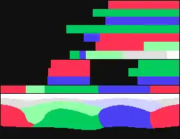The SECAM palette was reduced to a simple 3-bit RGB, containing only 8 colors (black, blue, red, magenta, green, cyan, yellow and white) by mapping the luma values: