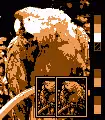 The original Game Boy uses a monochrome 4-shade palette. Because the non-backlit LCD display background is greenish, this results in a "greenscale" graphic display, as it is shown in the simulated image (at Game Boy display resolution), below. The Game Boy Pocket uses a monochrome 4-shade palette using actual gray, while the Game Boy Light gives the screen more of a bright blueish tint while its backlight is turned on. However, if its backlight were not on, it would look the same as the Game Boy Pocket.