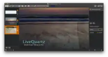 Each document is in a single window with layers and filters on both sides, tools are displayed on the top and document settings or at the bottom in the status bar. LiveQuartz[1] features layers-based image editing, non destructive filters and selection, painting and retouching tools. LiveQuartz was one of the first public raster image editors built on top of Core Image to be made public. In May 2005, when the first beta of iMage (the original name of LiveQuartz) was released, its singularity was that it was the first graphic editor to use two new Mac OS X Tiger frameworks: Core Image and Core Data. LiveQuartz was also, back in early 2005, the first Mac OS X image editing app to use a unique window user interface without "palettes".