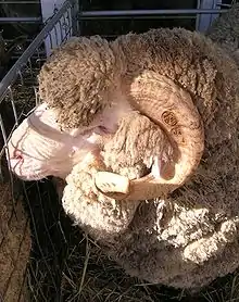Horses may also be branded on their hooves,[10] but this is not a permanent mark, so needs to be redone about every six months. In the military, some brands indicated the horses' army and squadron numbers. These identification numbers were used on British army horses so dead horses on the battlefield could be identified. The hooves of the dead horses were then removed and returned to the Horse Guards with a request for replacements. This method was used to prevent fraudulent requests for horses.[11] Merino rams and bulls are sometimes firebranded on their horns for permanent individual identification.