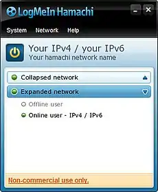 ![]() Screenshot of the Hamachi Client, showing a joined network and other users who are participating | |