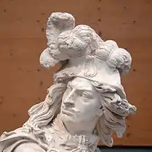 His father betrothed him to Claire-Clémence de Maillé-Brézé, niece of Cardinal Richelieu, before he joined the army in 1640.[2] Despite being in love with Marthe du Vigean, daughter of the king's gentleman of the bedchamber, François Poussard, he was compelled by his father to marry his fiancée, who was thirteen.[3] Although she bore her husband three children, Enghien later claimed she committed adultery with different men in order to justify locking her away at Châteauroux, but the charge was widely disbelieved. Saint-Simon, while admitting that she was homely and dull, praised her virtue, piety, and gentleness in the face of relentless abuse.[4]