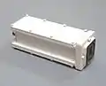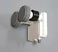 A monoblock (or monobloc) LNB is a single unit comprising two, three or four LNBs and a DiSEqC switch, designed to receive signals from two, three or four satellites spaced close together and to feed the selected signal to the receiver. The feedhorns of the two LNBs are at a fixed distance apart for reception of satellites of a particular orbital separation (often 6°, but also 4°). Although the same functionality can be achieved with separate LNBs and a switch, a monoblock LNB, constructed in one unit, is more convenient to install and enables the two feedhorns to be closer together than individually cased LNBs (typically 60mm diameter). The distance between the feedhorns depends on the orbital separation of the satellites to be received, the diameter and focal length of the dish used, and the position of the reception site relative to the satellites. So monoblock LNBs are usually a compromise solution designed to operate with standard dishes in a particular region.[19] For example, in parts of Europe, monoblocks designed to receive the Hot Bird and Astra 19.2°E satellites are popular because they enable reception of both satellites on a single dish without requiring an expensive, slow and noisy motorised dish. A similar advantage is provided by the duo LNB for simultaneous reception of signals from both the Astra 23.5°E and Astra 19.2°E positions.