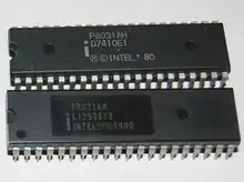 The Intel MCS-51 (commonly termed 8051) is a single chip microcontroller (MCU) series developed by Intel in 1980 for use in embedded systems. The architect of the Intel MCS-51 instruction set was John H. Wharton.[1][2] Intel's original versions were popular in the 1980s and early 1990s, and enhanced binary compatible derivatives remain popular today. It is a complex instruction set computer, but also has some of the features of RISC architectures, such as a large register set and register windows, and has separate memory spaces for program instructions and data.