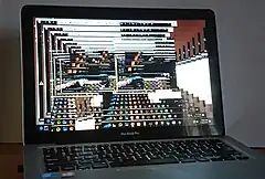 ![]() A computer infected with the MEMZ virus, depicted is one of the malware's key payloads, a 'screen tunnelling' effect. | |