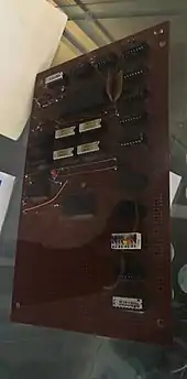 Williamson decided to design his own version to address these issues. National had an evaluation system known as the IntroKit that included the SC/MP processor, 256 bytes of RAM, and several support chips. Among these was a system that interfaced the board to the KBDKit, a handheld electronic calculator that was used as a basic display and keyboard. But instead of using National's version, Williamson instead used a calculator chip already being used at CCL, and went looking for a very low-cost calculator to replace National's. This led to the use of a bright red Sinclair Cambridge Memory calculator from Sinclair Radionics as the interface.[3]