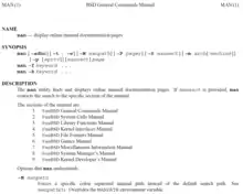 - ↑ "man(1)". FreeBSD General Commands Manual. Archived from the original on 2023-01-30. Retrieved 2023-07-15.